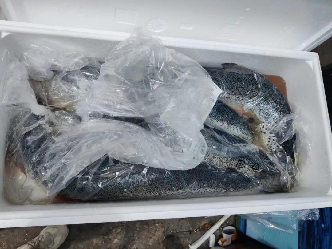 最近兩周是國慶節備貨期,大部分三文魚發至廣州機場,短時間激增的數量給監管、清關造成了很大的壓力,導致冰鮮三文魚落地后積壓非常嚴重,客戶反饋損耗變質比例非常高,冰塊化水是常態。