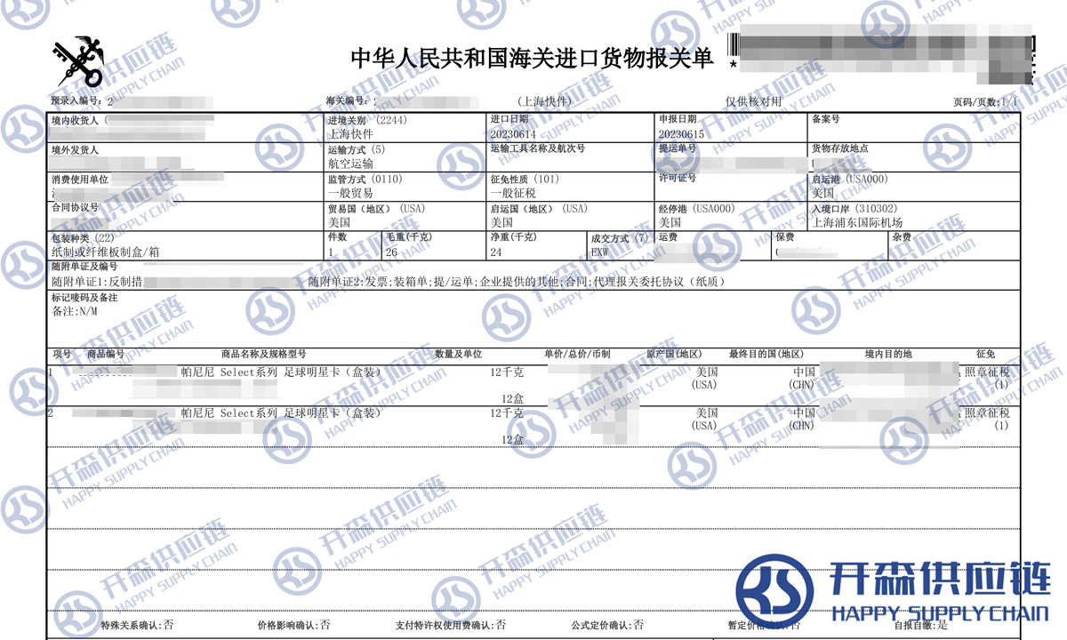 開森進口供應(yīng)鏈擁有球星卡進口報關(guān)操作經(jīng)驗及案例,十余年操作經(jīng)驗及案例可供參考,可按需定制球星卡進口方案,幫助客戶解決進口難題,快速進口清關(guān)到港到貨。